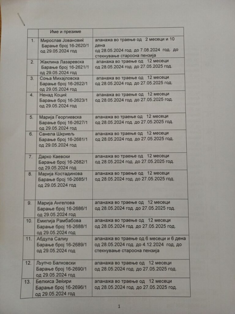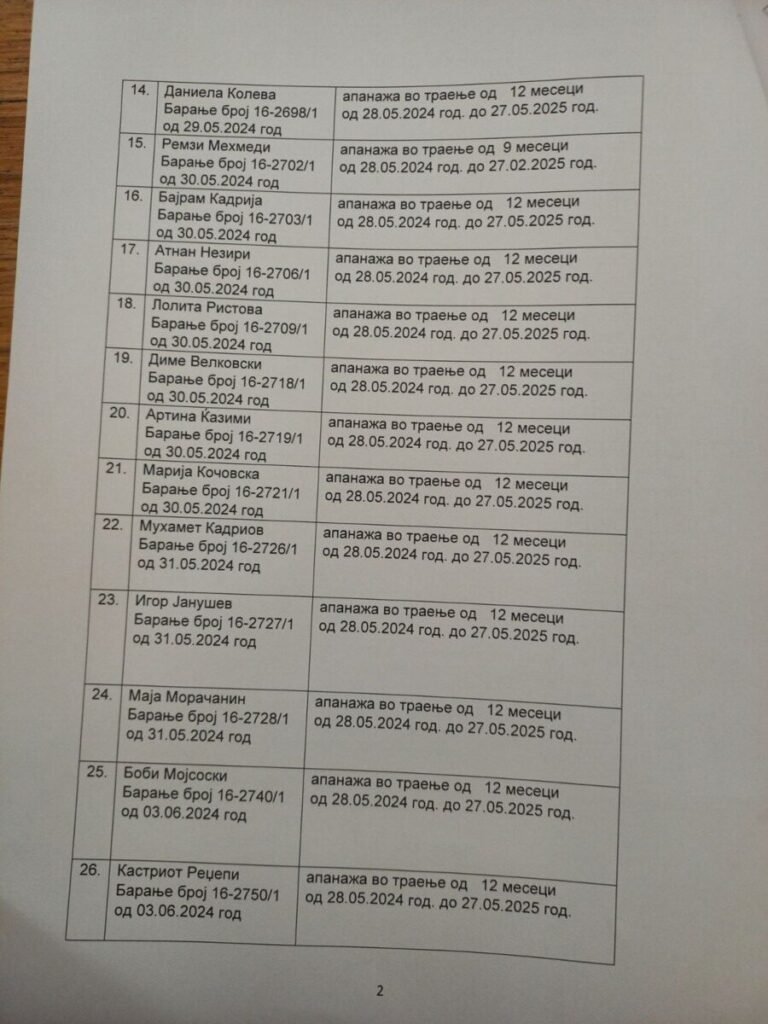 Më poshtë është edhe lista me emrat e ish deputetëve që kanë kërkuar apanazh.
