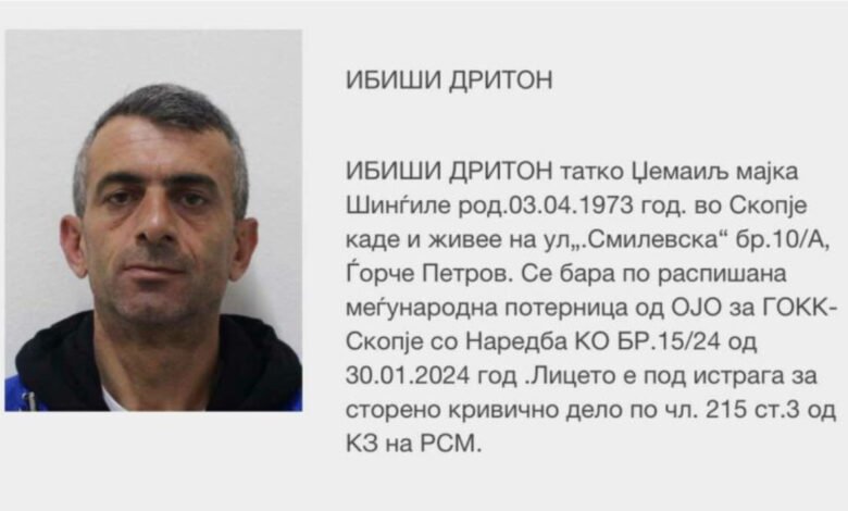 Më 13 maj 2025, në rrugën “Nora e Hotit” në Prishtinë, është arrestuar Driton Ibishi, rreth 52-vjeçar ndaj të cilit ekzistonte një urdhër arrest aktiv ndërkombëtar, i lëshuar nga ILECU (Njësia për Bashkëpunim Ndërkombëtar në Zbatim), raporton gazeta Sinjali.