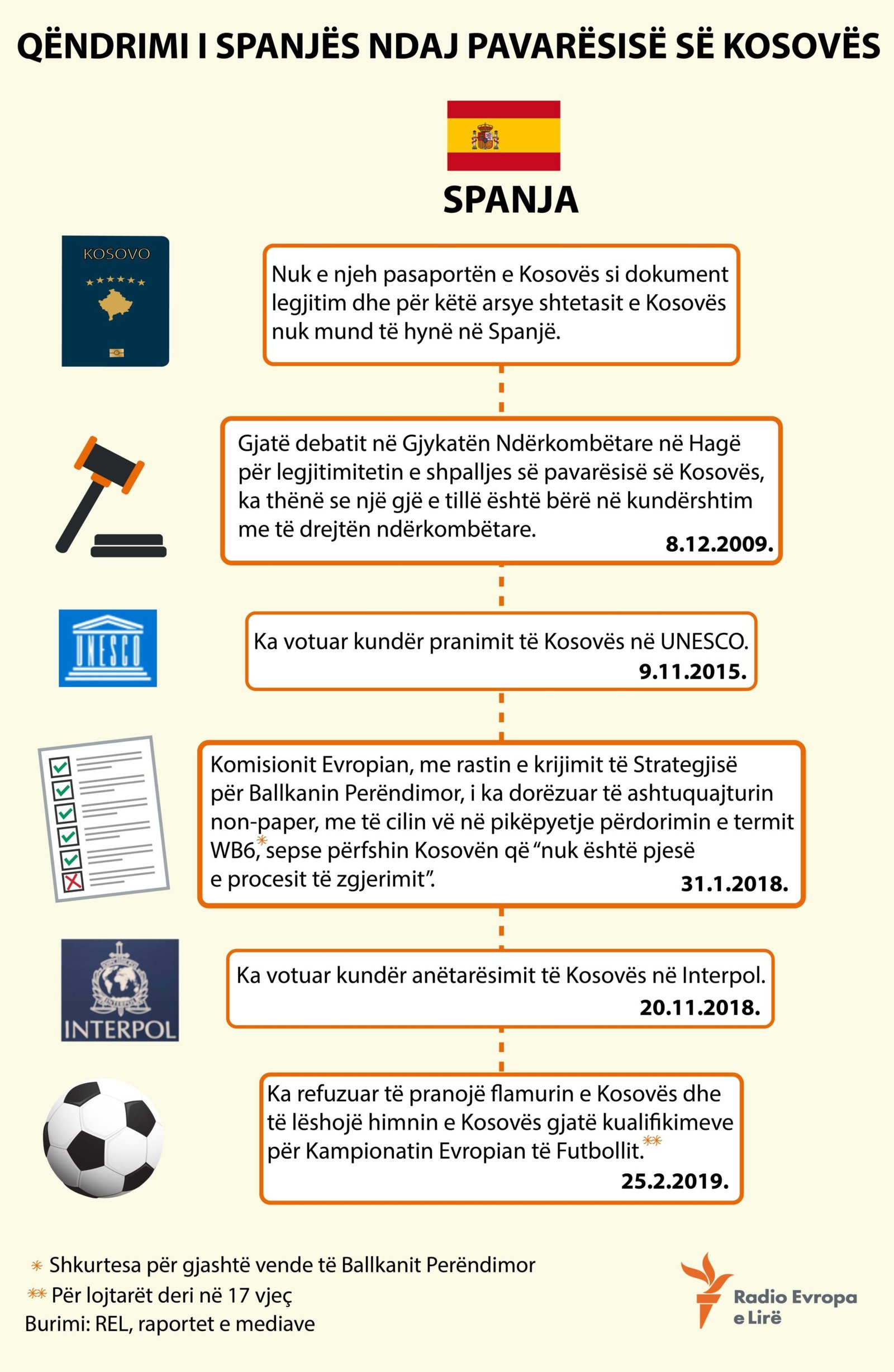 Spanja, së bashku me Sllovakinë, Greqinë, Qipron dhe Rumaninë janë pesë vendet e BE-së që nuk e njohin pavarësinë e Kosovës, të shpallur në shkurt të vitit 2008.