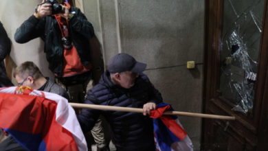 Protestuesit thyejnë derën e Kuvendit të Serbisë, policia gjuan gaz lotsjellës