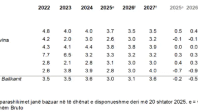 Rritja reale e BPV-së nga 3,1 për qind në vitin 2025, nga 3 për qind në vitin 2026 dhe nga…