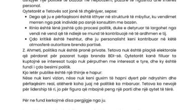 Një letër publike është dërguar degës së BDI-së Tetovë, nga një grup aktivistësh të kësaj partie, ku është shprehur zhgënjimi…