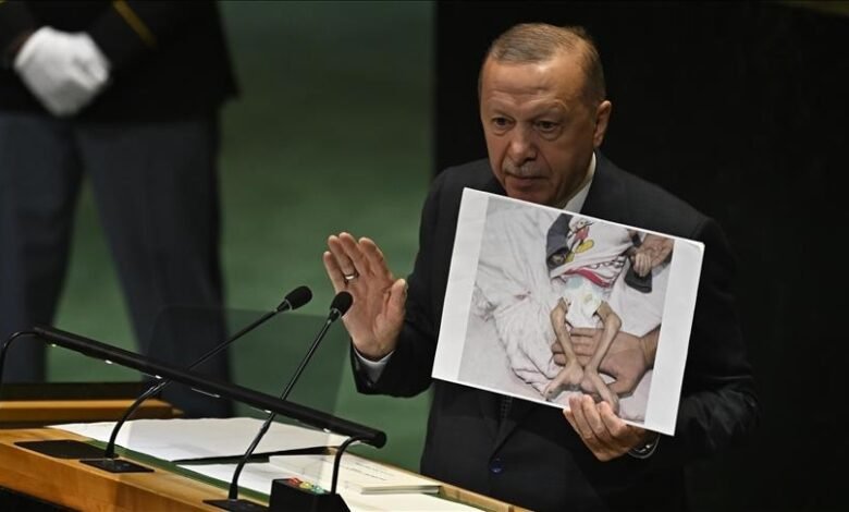 Duke iu drejtuar Asamblesë së Përgjithshme të OKB-së, presidenti turk Recep Tayyip Erdoğan të martën u bëri thirrje “të gjithë udhëheqësve botërorë që të qëndrojnë fort me palestinezët e shtypur në emër të njerëzimit”, raporton Anadolu.