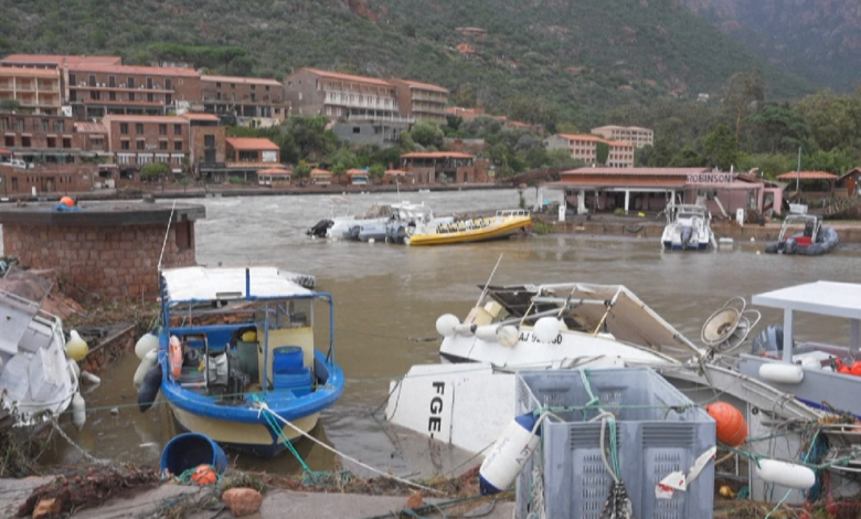 Në pamje nga porti i Ota-Porto, në jug të ishullit francez Korsika, pranë gadishullit Apenin, shiheshin dëmet e shkaktuara nga stuhia që ka përfshirë jugun e Evropës, me barka e makina të përmbysura dhe shtëpi e biznese të përfshira nga ujërat.