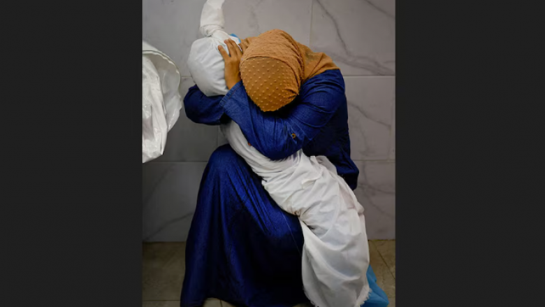 Imazhi fitues portretizon Inas Abu Maamar, 36 vjeç, duke qarë ndërsa mban në duar trupin e Salyt, shkruan Reuters, përcjell Telegrafi.