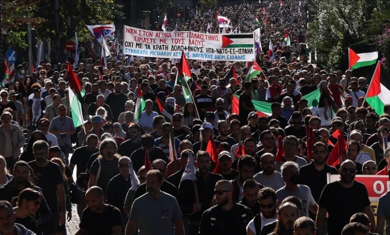 Në kryeqytetin e Greqisë, Athinë u mbajt protestë në mbështetje të Palestinës, raporton Anadolu.