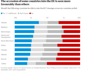 Sondazhet treguan se evropianët kanë një qëndrim të ftohtë ndaj anëtaërsimit në BE të Maqedonisë, Shqipërisë, Bosnjë-Hercegovinës, Kosovës, Gjeorgjisë, Moldavisë, Malit të Zi dhe Serbisë, me më pak se 30% mbështetje.