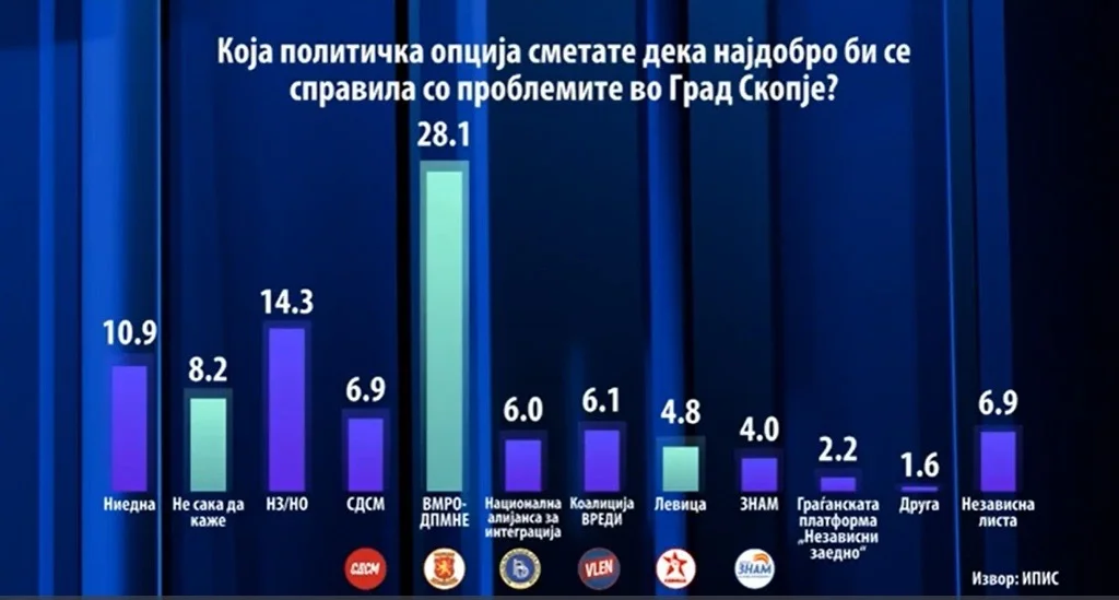 Ky sondazh i IPIS-it jep mesazhin e qartë se VLEN, përmes kandidatëve të saj, po fiton besimin e shqiptarëve dhe po konsolidohet si forca politike në Shkup, ndërsa AKI-ja me narrativën e saj për “referendum” po humb terren dhe besueshmëri.