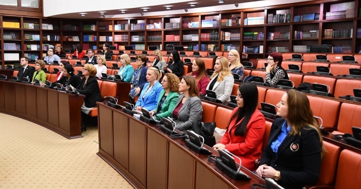 Në fjalën e saj përshëndetëse, kryetarja e Klubit, Lolita Ristova, falënderoi të pranishmit dhe të gjithë faktorët aktivë në këtë proces për forcimin e pjesëmarrjes së grave në politikë.