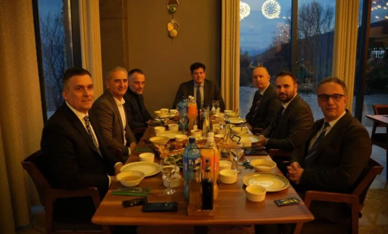 Kryeparlamentarin Afrim Gashi bashkë me Ministrat e koalicionit VLEN dhe Kryetarin e Komunës së Bogovinës Feti Abazi, kanë marrë pjesë në një darkë iftari të organizuar nga Ambasadori i BE-së në Maqedoninë e Veriut, Michalis Rokas.