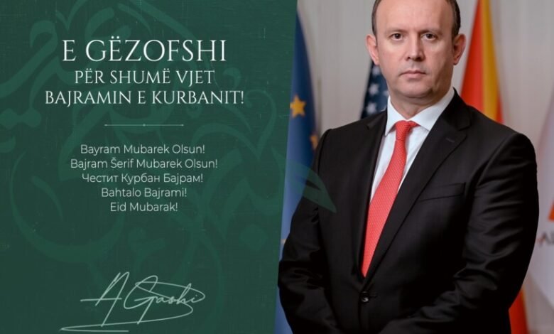Kryetar i Kuvendit të Republikës së Maqedonisë së Veriut Afrim Gashi ka uruar besitmarët myslimanë për festën e Bajramit të Kurbanit.