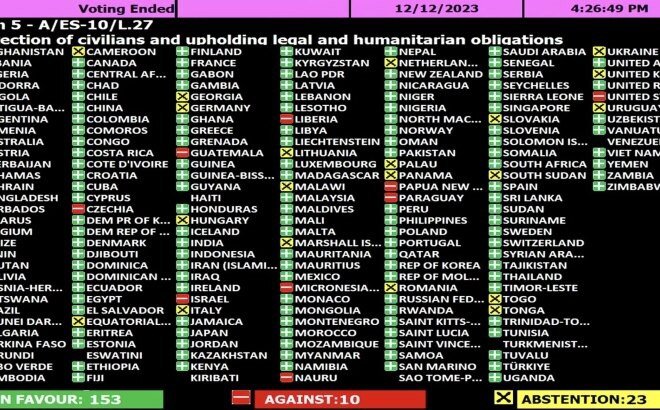 Për miratimin e rezolutës votuan 153 vende, 10 ishin kundër dhe 23 anëtarë të OKB-së abstenuan.