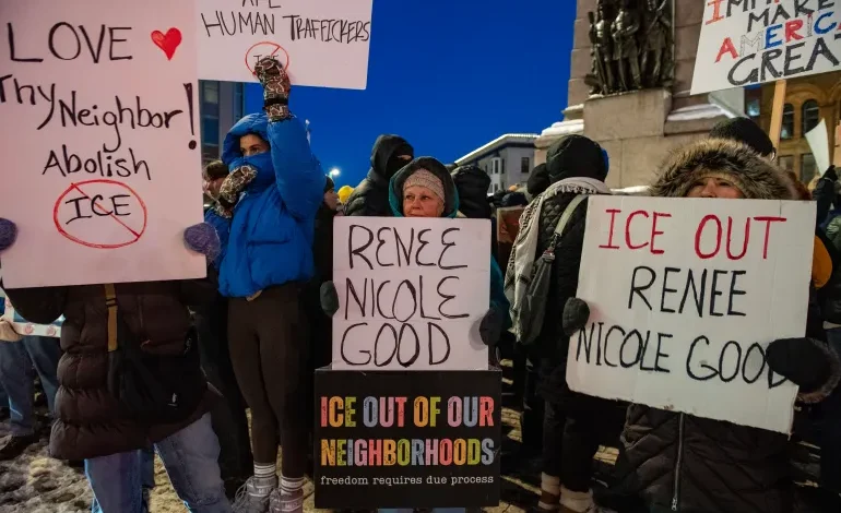 Organizatorët thanë se kërkesat e tyre përfshinin edhe përgjegjësi ligjore për agjentin e ICE që këtë muaj qëlloi për vdekje Renee Good, një shtetase amerikane, brenda makinës së saj, teksa ajo monitoronte aktivitetet e ICE.