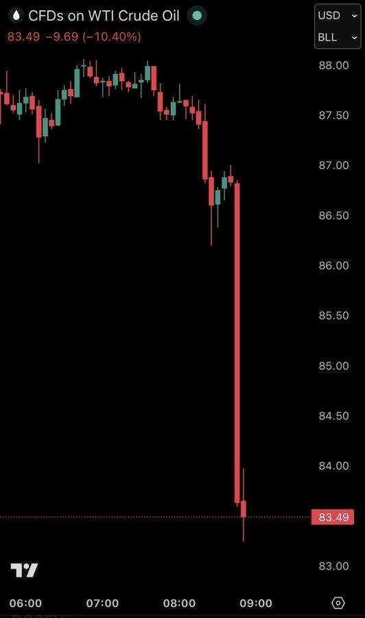 Nafta Brent, standardi global, ra me 10.8%, në 88.70 dollarë për fuçi. Ndërsa WTI, standardi amerikan, u ul me 11%, në 81.20 dollarë për fuçi.