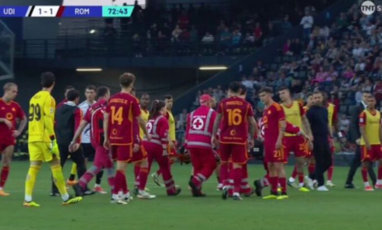 Sfida mes Udineses dhe Romës u ndërpre në minutën e 71-të, për të mos vijuar më, pasi tronditja ishte e madhe dhe futbollistët verdhekuq nuk dëshironin të vazhdonin lojën, ndërkohë që shoku i tyre i skuadrës ishte në rrezik për jetën.