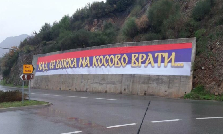 Në Budva shfaqet baneri i madh “Kur ushtria serbe të kthehet në Kosovë”