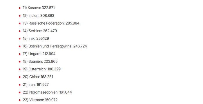 Numri i shtetasve të vendeve të rajonit që jetojnë në Gjermani janë: