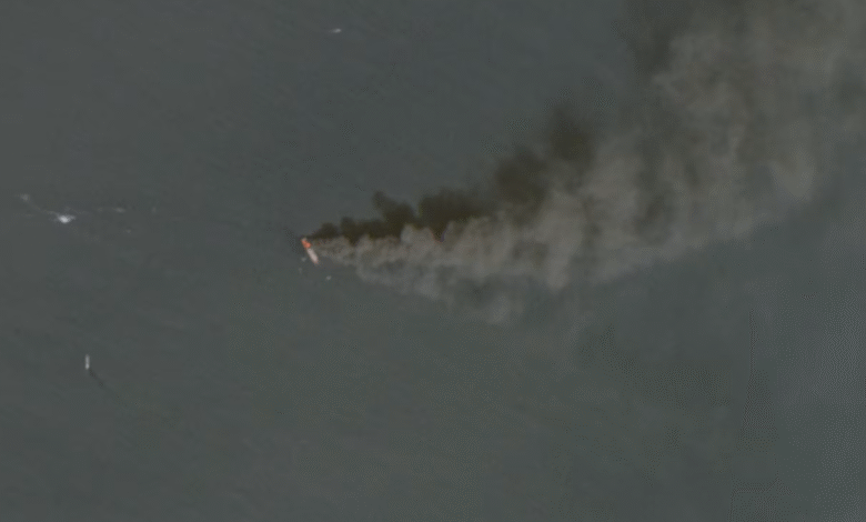 I gjithë ekuipazhi e braktisi anijen. Nuk është e qartë se kur filloi zjarri i parë në imazhin satelitor.