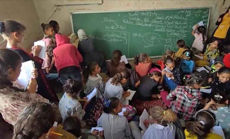 Në Gaza, ku arsimi është pezulluar për gati dy vjet, shumica e shkollave janë shkatërruar nga bombardimet, dhe ndërtesat e mbetura janë bërë qendra strehimi për palestinezët e zhvendosur.