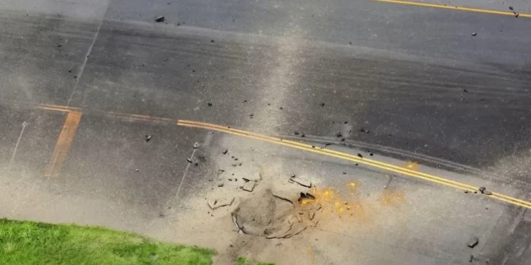 Videot e transmetuara në televizionin japonez treguan një krater në rrugë lidhëse, që thuhet se ishte rreth 7 metra në diametër dhe 1 metër i thellë.