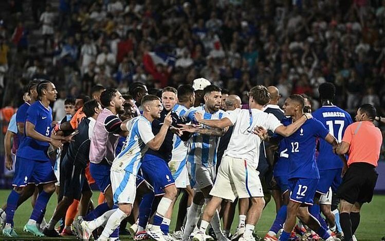 Lojtarët e kombëtares së Francës dhe asaj të Argjentinës u përfshinë në një sherr masiv në fund të përballjes mes tyre në Lojërat Olimpike, pak javë pas polemikave në distancë dhe akuzave për racizëm ndaj mesfushorit argjentinas Enzo Fernandes.