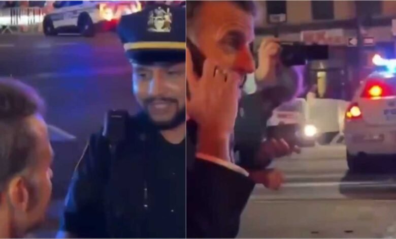 Presidenti francez Emmanuel Macron u bllokua për një moment nga policia në rrugët e New York City për shkak të kalimit të autokolonës së Donald Trump, sipas pamjeve të Brut.