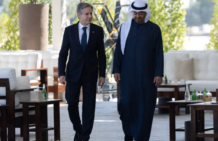 Presidenti i Emirateve të Bashkuara Arabe (EBA), Mohammed bin Zayed Al Nahyan, zhvilloi takim me sekretarin amerikan të Shtetit, Antony Blinken, me të cilin diskutuan për “reflektimet e rrezikshme të krizës në Rripin e Gazës mbi paqen, stabilitetin dhe sigurinë në rajon”, transmeton Anadolu.