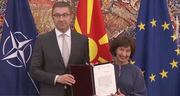 Presidentja e RMV-së Gordana Siljanovska ia dorëzoi mandatin për formimin e Qeverisë kryetarit të partisë më të madhe maqedonase Hristijan Mickoski, raporton Alfax.