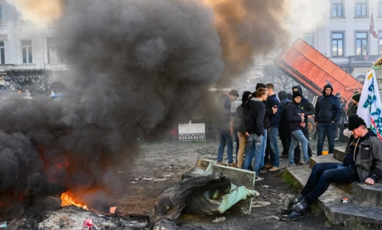 Tymi mbuloi qiellin pranë vendit ku policia belge përdori uji kundër fermerëve për të mbrojtur selinë e BE-së. Policia kishte vendosur barrierave prej betoni dhe tela me gjemba.