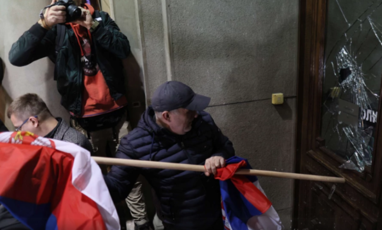 Protestuesit thyejnë derën e Kuvendit të Serbisë, policia gjuan gaz lotsjellës