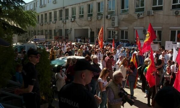 “Në këtë moment ne nga njëra anë e dërgojmë porosinë për pakënaqësinë tonë për atë që nuk ndodhi, që nuk kemi aneks të nënshkruar. Ndërsa e dyta është që kjo duhet patjetër të ndodh. Nëse nuk ndodh, sot ishim në këtë numër, herën tjetër do të jemi në numër akoma më të madh. Ne nuk heqim dorë, në pjesën e asaj që duhet të realizohet, nënshkrimi i aneksit të marrëveshjes kolektive”, tha Lubisha Karanfillovski, kryetar i Sindikatës së shëndetësisë, farmacisë, dhe mbrojtjes sociale.