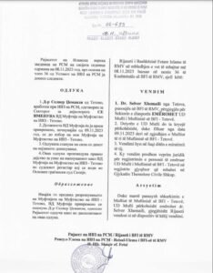 Rijaseti i Bashkësisë Fetare Islame ka njoftuar se gjatë mbledhjes së mbajtur më datë 08.11.2023 ka marrë vendim për të shkarkuar nga detyra Muftiun e Tetovës dhe atë të Strugës.