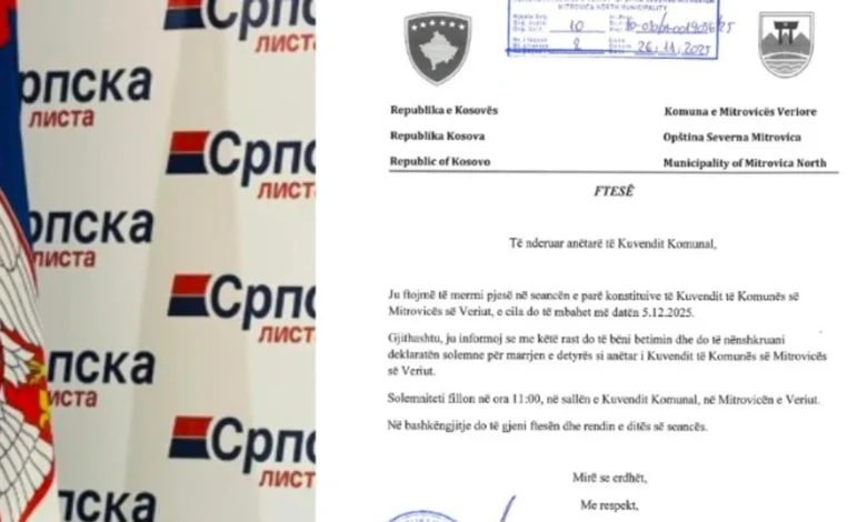 Lista Serbe është tërhequr pas ftesës për seancën konstituive të Mitrovicës së Veriut, pasi dokumenti fillestar nuk përmbante shënimin zyrtar “Republika e Kosovës”.