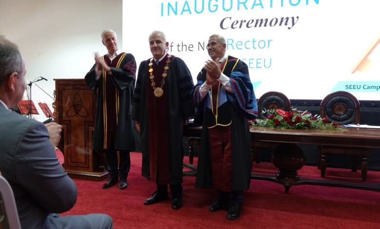 Në Universitetin e Evropës Juglindore u zhvillua ceremonia solemne e inaugurimit të rektorit të ri, Prof. Dr. Sadudin Ibraimi, në prani të përfaqësuesve të korit diplomatik, rektorëve nga vendi, Shqipëria e Kosova, personaliteteve të jetës publike, biznesit, stafit akademik, studentëve dhe familjarëve.