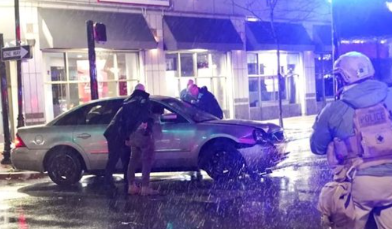 Një makinë me targa Delaware goditi një autokolonë SUV të sigurisë së presidentit amerikan që në kryqëzimin përballë hyrjes së selisë së fushatës.
