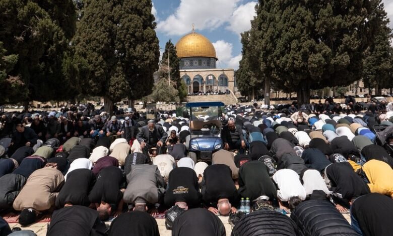 Turma të mëdha filluan të mbërrinin në orët e para të mëngjesit, duke mbushur oborret e xhamisë me burra, gra, fëmijë dhe besimtarë të moshuar në një reflektim të gatishmërisë së palestinezëve për t’u kthyer pas një mungese të zgjatur.